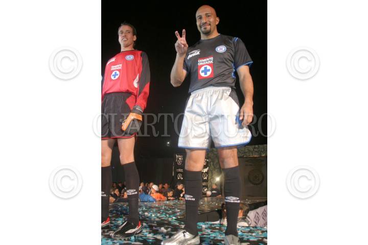 MEXICO D.F 12 ENERO 2004.- El jugador Fransisco "Kikin" Fonseca firma playeras a unos aficionados durante la presentaciòn de los nuevos uniformes del equipo del Cruz Azul. FOTO: Eunice Adorno/CUARTOSCURO.COM