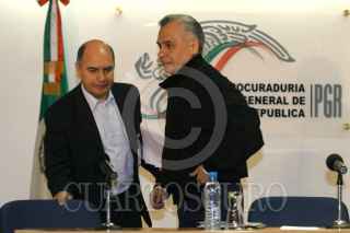 MEXICO, D.F. 12FEBRERO2005.- El procurador General de la República, Rafael Macedo de la Concha informó en conferencia de prensa la captura de ocho integrantes de la banda conocida como "los chilas" los cuales operaban en el Distrito Federal, y en los estados de México, Morelos, Guerrero y Jalisco. FOTO: Nelly Salas/CUARTOSCURO.COM