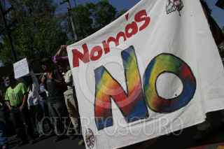 MEXICO, D.F. 12FEBRERO2005.- Integrantes de diversas organizaciones se manifestaron fuera de las instalaciones de la Procuraduria de Justicia del D. F. para exigir justicia en los caso de Digna Ochoa y Pavel Gonzalez. FOTO:Nelly Salas/CUARTOSCURO.COM
