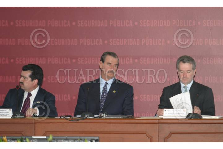 MEXICO, D.F. 14FEBRERO2005.- Juan Carlos Romero Hicks, gobernador de Guanajuato, Ismael Hernández, gobernador de DUrango, Andrés Manuel López Obrador, jefe de gobierno de la ciudad de México y José Reyes Baeza gobernado de Chihuahua durante la reunión del Consejo de Seguridad. FOTO: Nelly Salas/CUARTOSCURO.COM