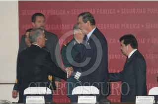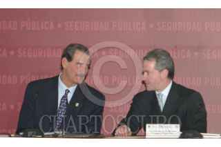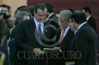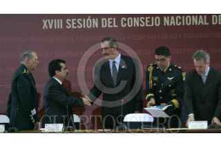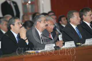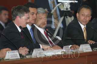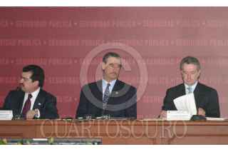 MEXICO, D.F. 14FEBRERO2005.- Juan Carlos Romero Hicks, gobernador de Guanajuato, Ismael Hernández, gobernador de DUrango, Andrés Manuel López Obrador, jefe de gobierno de la ciudad de México y José Reyes Baeza gobernado de Chihuahua durante la reunión del Consejo de Seguridad. FOTO: Nelly Salas/CUARTOSCURO.COM