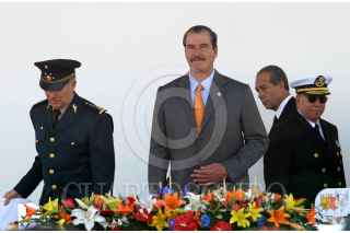 STA. LUCIA, ESTADO DE MEXICO, 15FEBRERO2005.- Ceremonia conmemorativa del ¨Día de la Fuerza Aerea Mexicana¨, celebrada en el Campo Militar Sta. Lucia, encabezada por el presidente Vicente Fox. FOTO: Sandra Perdomo/CUARTOSCURO.COM