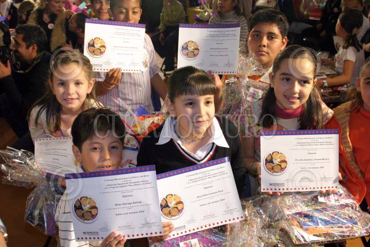 MEXICO, D.F., 15FEBRERO2005.- Los ganadores del consurso de dibujo infantil "Adios a las Trampas", muestran sus reconocimientos durante la premiación que se realizaó en el Museo del Papalote. FOTO: Moisés Pablo/CUARTOSCURO.COM