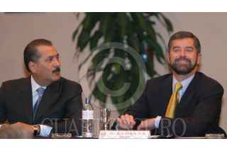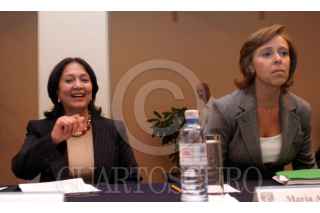 MEXICO, D.F. 21FEBRERO2005.- María Amparo Casar, funcionaria de Gobernación y Amalia Garcia, gobernadora de Zacatecas, durante el Coloquio Internacional ¨Una propuesta de Gobernabilidad y Pluralidad política. FOTO: Sandra Perdomo/CUARTOSCURO.COM