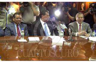 MEXICO, D.F. 22FEBRERO2005.- Roberto Madrazo Pintado, se reunió con integrantes del TUCOM, en el CEN del PRI. En la gráfica, Roberto Madrazo, Enrique Jackson, presidente de la mesa directiva de la Cámara de Senadores y Manuel Ángel Núñez Soto, gobernador de Hidalgo FOTO: Iván Stephens/CUARTOSCURO.COM