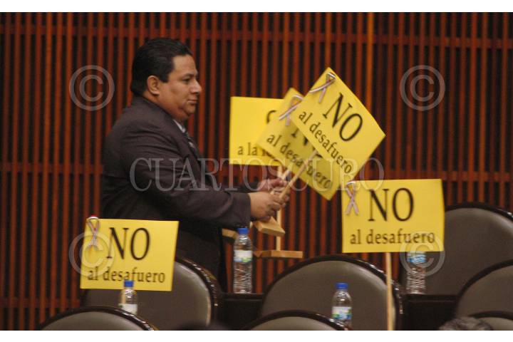 MEXICO D.F. 22FEBREROO2005.- Durante la sesión de la Camara de Diputados, legisladores perredistas colocaron pancartas en sus curules para mostrar su apoyo al jefe de gobierno capitalino. FOTO: Germán Romero/CUARTOSCURO.COM