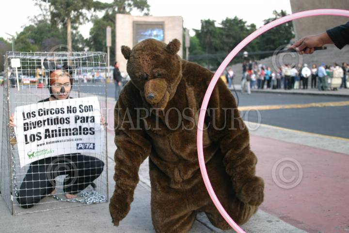MEXICO, D.F. 24MARZO2005.- Un policía retira a una integrantes de la PETA, personas por la ética en el trato de los animales, durante la protesta realizada frente al Auditorio Nacional, durante la presentación del circo Ringling Brothers. FOTO: Sandra Perdomo/CUARTOSCURO.COM