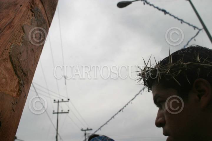 MEXICO D.F 25 MARZO 2005.- Nazarenos descansan por las calles en este viernes en la conmemoración de la Pasión de Cristo en Iztapalapa, en la explanada del Jardín Cuitláhuac, en el centro de la demarcación. FOTO: Eunice Adorno/CUARTOSCURO.COM