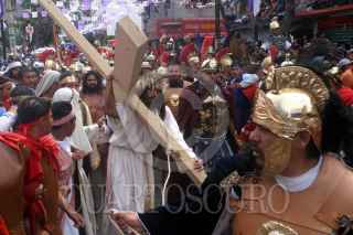 MEXICO, D.F., 25MARZO2005.- Se realizó a CLXII viacrucis de Iztapalapa, el nazareno fue interpretado por Oswaldo Gordon Domínguez de 18 años. FOTO: Moisés Pablo/CUARTOSCURO.COM