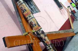 MEXICO, D.F., 25MARZO2005.- Unas cruces descansa sobre un poste con carteles del No al Desafuero, la proxima semana se decide en la Cámara de Diputados el futuro politico del jefe de gobierno. FOTO: Moisés Pablo/CUARTOSCURO.COM