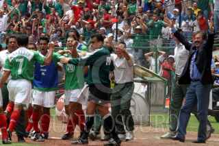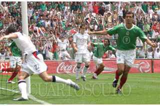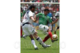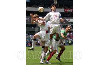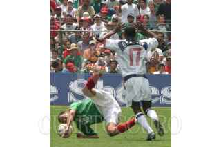 MEXICO, D.F. 27MARZO2005.- Cuauhtémoc Blanco, de la selección mexicana es derribado por DaMarcus Beasley de la selección estadounidense, durante el partido de eliminatoria de la CONCACAF, en el Estadio Azteca. FOTO: Sandra Perdomo / CUARTOSCURO.COM