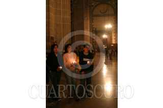 MEXICO D.F 02 ABRIL 2005.- Feligreses oran por el Papa Juan Pablo II después de haber muerto la noche de ayer, en la catedral metropolitana. FOTO: Eunice Adorno/CUARTOSCURO.COM