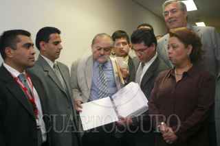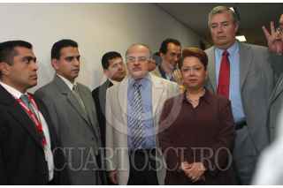 MEXICO D.F 02 ABRIL 2005.- Integrales de la Sección Instrucctora Francisco Cuautémoc Frías del PRI Rebeca Elías Laredo, PRI, y Alvaro Elías Laredo, entregaron a la Mesa Directiva de la Cámara de Diputados el documento de dictamen que declara la procedencia para el desafuero del jefe de Gobierno capitalino, Andrés Manuel López Obrador. FOTO: Eunice Adorno/CUARTOSCURO.COM