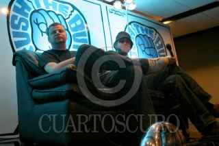 MEXICO, D.F. 03MAYO2005.- The Chemical Brothers, durante la presentación de su nuevo disco, ¨Push the Bottom¨, en un hotel del centro de la cuidad. FOTO: Sandra Perdomo/CUARTOSCURO.COM