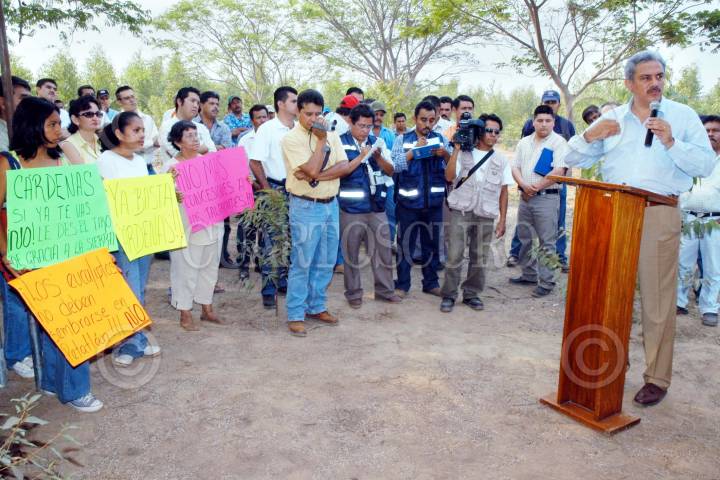 PETATLAN, GUERRERO 06MAYO2005.- EL titular de la Semarnat, Alberto Cardenas JimÈnez es abordado por Pedro Rojas miembro de la organizaciÛn ecologista de la sierra de Petatlan (a la que pertenece Felipe Arriaga, actualmente preso en el penal de Zihuatanejo por supuestos delitos del fuero comun). el secretario vino a este municipio de la costa grande de Guerrero a entregar concesiones de aprovechamiento forestal pese a ser una zona donde constantemente se hacen denuncias de tala inmoderada. FOTO: Miguel Dimayuga/CUARTOSCURO.COM