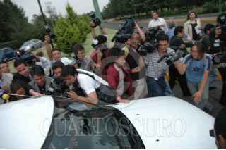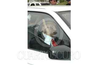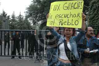 MEXICO, D.F. 06MAYO2005.- Una mujer agradeció por medio de una manta la reunión del jefe de gobierno capitalino y el presidente de la república. FOTO: Iván Stephens/CUARTOSURO.COM