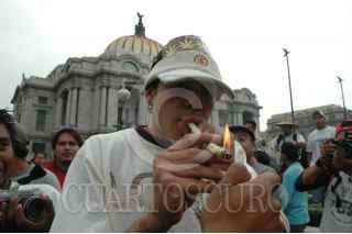 MEXICO, D.F. 07MAYO2005.- La manifestación a favor de la legalización de la lariguana se realizó frente al Palacio de Bellas Artes en el centro de la ciudad. FOTO: Iván Stephens/CUARTOSCURO.COM