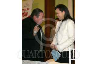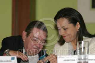 MEXICO, D.F. 16MAYO2005.- Gilberto Rincón Gallardo y Josefina Vazquez Mota, secretaria de Desarrollo Social previo a la presentación de los resultados de la Encuesta Nacional de Discriminación. FOTO: Nelly Salas/CUARTOSCURO.COM
