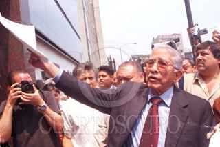 MEXICO, D.F. 27MAYO2005.-El ex dirigente sindical petrolero, Joaquín Hernández Galicia, La Quina, al arribar a la delegación metropolitana de la Procuraduría General de la República (PGR) para conocer el estado que guarda la denuncia de hechos que inició el 26 de agosto de 2003 contra Carlos Romero Deschamps entre otros. FOTO: Oscar López/CUARTOSCURO.COM