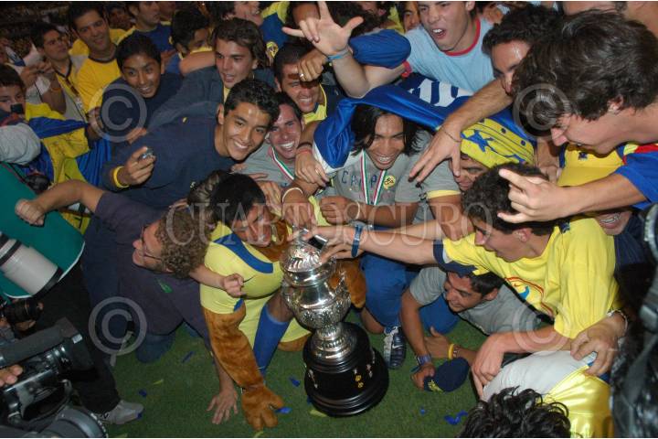 MEXICO D.F.29MAYO2005.- Alejandro Villalobos, jugador de Tecos UAG y Miguel Andoni Hernandez lamentan la derrota en la gran final del Campeonato Clausura 2005 del futbol mexicano donde perdieron los tecos con marcador de 6 goles 3. FOTO: Ivan Stephens/CUARTOSCURO.COM