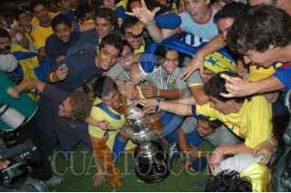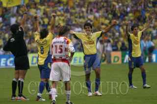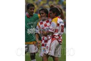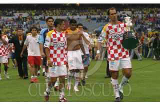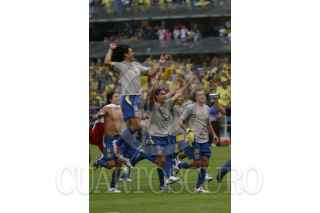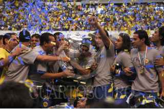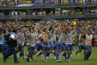 MEXICO D.F.29MAYO2005.- Alejandro Villalobos, jugador de Tecos UAG y Miguel Andoni Hernandez lamentan la derrota en la gran final del Campeonato Clausura 2005 del futbol mexicano donde perdieron los tecos con marcador de 6 goles 3. FOTO: Ivan Stephens/CUARTOSCURO.COM