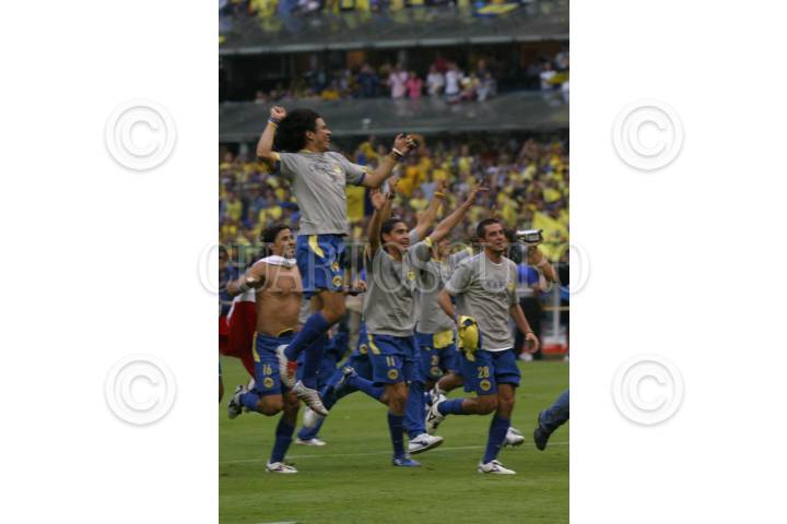 MEXICO D.F.29MAYO2005.- Alejandro Villalobos, jugador de Tecos UAG y Miguel Andoni Hernandez lamentan la derrota en la gran final del Campeonato Clausura 2005 del futbol mexicano donde perdieron los tecos con marcador de 6 goles 3. FOTO: Ivan Stephens/CUARTOSCURO.COM