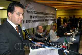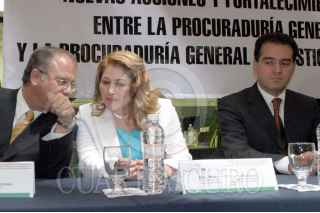 CD. JUAREZ, CHIHUAHUA 30MAYO2005.- Mirelle Roccatti nueva fiscal especial para la atención a crímenes en contra de mujeres en Cd, Juarez, luego de que rindiera protesta ante Daniel Cabeza de Vaca, procurador General de la República, como nueva titular de esta Comisión Federal. Así también se llevó a cabo el anuncio de 60 millones de pesos que serán entregados a los familiares de las victimas de los feminicidios que ocurren en esta frontera. FOTO: JGuadalupe Perez/CUARTOSCURO.COM