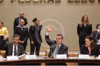 MEXICO, D.F. 31MAYO200.- Los consejeros electorales Virgilio Andrade Martinez, Marìa Teresa de Jesùs Gonzàlez y Marìa Lourdes del Refugio, en votaciones durante el la sesion ordinaria del Consejo General perteneciente al Instituto Federal Electoral. FOTO: Germàn Romero/CUARTOSCURO.COM