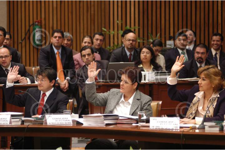 MEXICO, D.F. 31MAYO200.- Los consejeros electorales Virgilio Andrade Martinez, Marìa Teresa de Jesùs Gonzàlez y Marìa Lourdes del Refugio, en votaciones durante el la sesion ordinaria del Consejo General perteneciente al Instituto Federal Electoral. FOTO: Germàn Romero/CUARTOSCURO.COM
