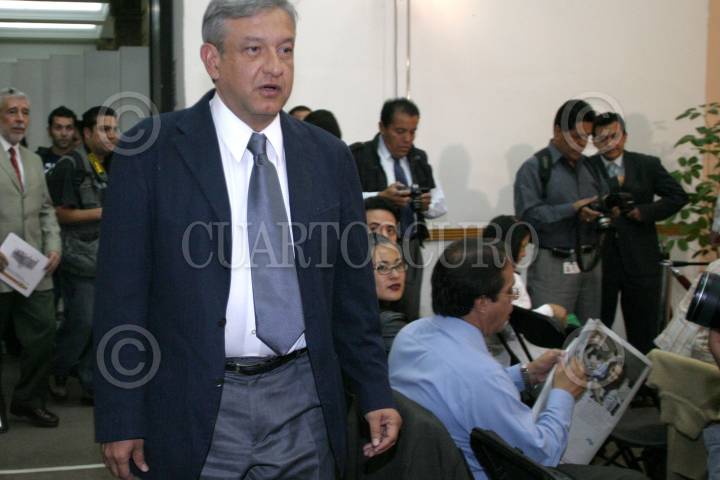 MEXICO, D.F. 06JUNIO2005.- César Buenrostro Hernández, Secretario de Obras y Servicios del D.F. y Andrés Manuel López Obrador, jefe de gobierno de la ciudad de México, durante la conferencia que ofreció a los medios de comunicación. FOTO: Nelly Salas/CUARTOSCURO.COM