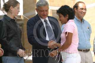 MEXICO, D.F. 06JUNIO2005.- Andrés Manuel López Obrador, jefe de gobierno de la ciudad de México, entregó viviendas las llaves de viviendas en la delagación Miguel Hidalgo, al evento lo acompañaron Laura Itzel Castillo (Izq), secretaria de desarrollo Urbano y Fernando Aboitiz (Der), delagado de Miguel Hidalgo. FOTO: Nelly Salas/CUARTOSCURO.COM