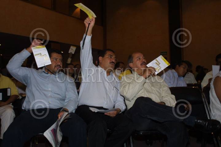 MEXICO, D.F. 18JUNIO2005.- Los asambleistas Alfredo Hernández Raigosa y Lorena Villavicencio platican con sus similares durante la reunión del VI Consejo Estatal del PRD. FOTO: Alejandro Arvizu/CUARTOSCURO.COM
