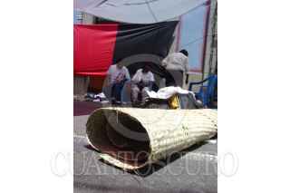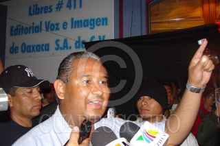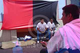 OAXACA, OAXACA, 18JUNIO2005.- El dirigente de la Confederación Revolucionaria de Obreros y Campesinos (CROC), David Aguilar robles colocó la bandera rojinegra en las instalaciones del periódico de circulación local Noticias, así mismo señalo que el conflicto con la editorial es un lió laboral no político. FOTO: Blanca Esthela Hernández/CUARTOSCURO.COM