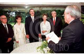 En una pequeña y sencilla ceremonia se llevo a cabo la boda por lo civil del primer mandatario y Martha Sahagún, quienes fueron acompañados por un hermano del presidente y el padre de la ex vocera. FOTO:Especial Presidencia/CUARTOSCURO.COM