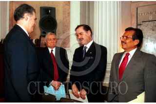 Diego Valadéz, Francisco Ealy Ortiz y Heladio Ramirez a su llegada al Foro convocado por Manuel Camacho Solís. FOTO: Christian Palma/CUARTOSCURO.COM