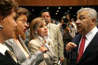 MEXICO, D.F. 21JUNIO2005.- Socorro Díaz, diputada perredista, platica con el lider de la bancada priísta Emilio Chuayffet, durante la primera sesión del periodo extraordinario de la LIX legislatura en San Lázaro. FOTO: Sandra Perdomo/CUARTOSCURO.COM