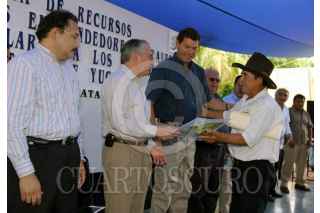 IZAMAL, YUCATAN 21JUNIO2005.- Florencio Salazar Secretario de la Reforma Agraria, otorgó a campesinos recursos para becas y proyectos de Escuela. FOTO: CUARTOSCURO.COM