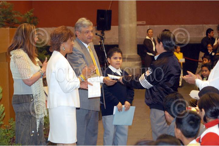 MEXICO, D.F. 21JUNIO2005.- El jefe de gobierno Andrés Manuel López Obrador durante la entrega de becas a madres solteras en el museo de la ciudad de México. FOTO: Miguel Dimayuga/CUARTOSCURO.COM