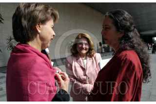 MEXICO D.F. 22 JUNIO2005.- Las diputadas federales Blanca Gomez y Marcela Lagarde conversan con Mirelle Rocatti ( centro) Fiscal Especial para Investigar los Homicidios en Ciudad Juarez en el patio de la cámara de diputados. FOTO: Cynthia Aceves/CUARTOSCURO.COM