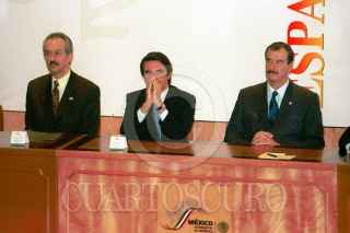 Francisco Gil Díaz, José María Aznar y Vicente Fox en la inauguración del Foro de Inversiones y Cooperación Empresarial México-España, en las oficinas de Bancomext. FOTO: Victoria Valtierra/CUARTOSCURO.COM