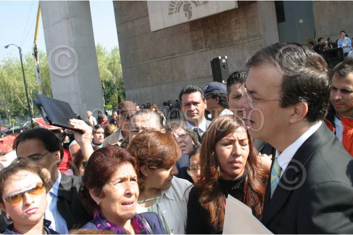MEXICO, D.F. 08JULIO2005.- Virginia Jaramillo, delegada de Cuauhtemoc y Marcelo Ebrard, secreatario de Desarrollo Social del D. F. se dirigen a la explanadade dicha demarcación, donde entregaron resultados de mantografias. FOTO: Nelly Salas/CUARTOSCURO.COM