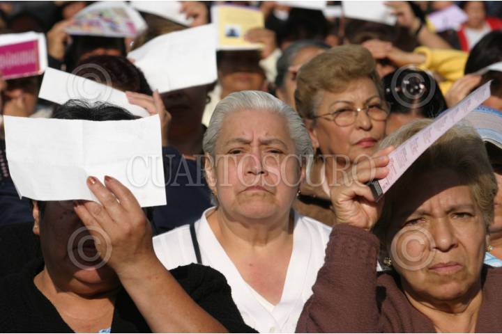 MEXICO, D.F. 08JULIO2005.- Virginia Jaramillo, delegada de Cuauhtemoc y Marcelo Ebrard, secreatario de Desarrollo Social del D. F. se dirigen a la explanadade dicha demarcación, donde entregaron resultados de mantografias. FOTO: Nelly Salas/CUARTOSCURO.COM
