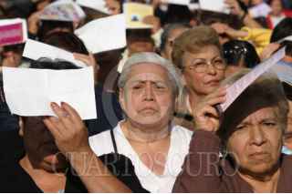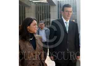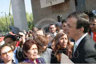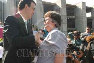 MEXICO, D.F. 08JULIO2005.- Virginia Jaramillo, delegada de Cuauhtemoc y Marcelo Ebrard, secreatario de Desarrollo Social del D. F. se dirigen a la explanadade dicha demarcación, donde entregaron resultados de mantografias. FOTO: Nelly Salas/CUARTOSCURO.COM