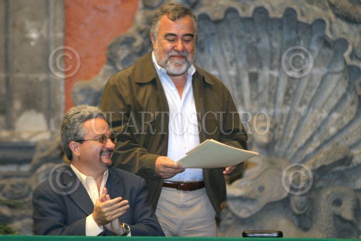 MEXICO, D.F. 09JULIO2005.- Alejandro Encinas, secretario de Gobierno del D.F. al termino de su intervensión en la ceremonia de entrega de actas de nacimiento, en el Museo de la Ciudad de México. FOTO: Nelly Salas/CUARTOSCURO.COM