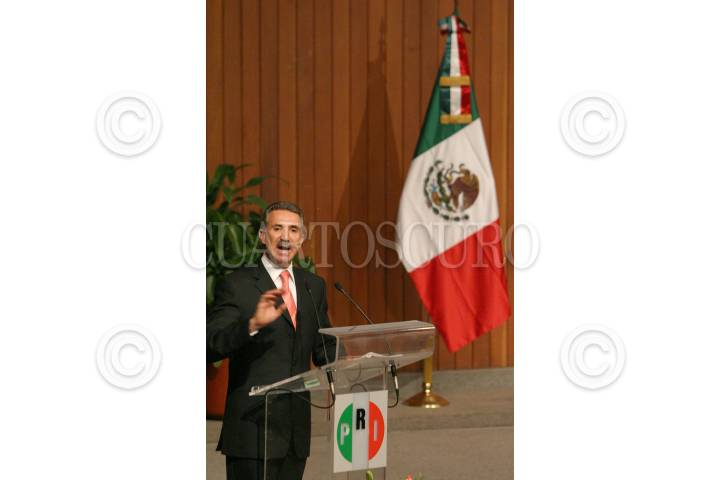 MEXICO, D.F. 12JULIO2005.- Los Priístas Enrique Peña Nieto, Roberto Madrazo, Arturo Montiel y Ney González celebran las victorias tricolores en el estado de México y Nayarit durante la sesión del consejo político. FOTO: Miguel Dimayuga/CUARTOSCURO.COM