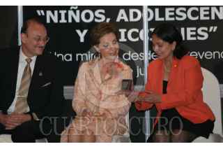 MEXICO, D.F. 13JULIO2005.-Martha Sahagún Jimenez exposa del Presidente Vicnet Fox y Amalia Garcia, gobernadora de Zacatecas, durante la presentaciòn del libro ¨Niños, Jovenes y Adicciones¨, en las instalaciones de un conocido Hotel de Paseo de la Reforma. FOTO: Osvaldo Aguilar/CUARTOSCURO.COM