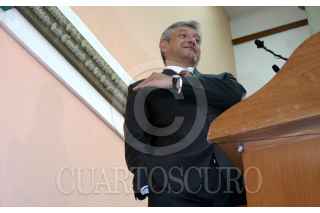 MEXICO, D.F. 13JULIO2005.- Andrés Manuel López Obrador, jefe de Gobierno capitalino, durante la conferencia matutina ofrecida diariamente a los medios de comunicación, en la sala de prensa Francisco Zarco. FOTO: Sandra Perdomo/CUARTOSCURO.COM