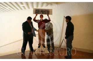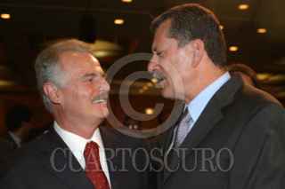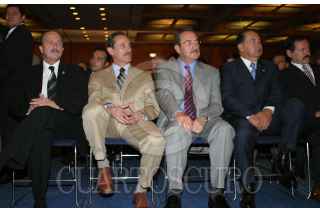 MEXICO, D.F. 13JULIO2005.- Simpatizantes de Arturo Montiel, Gobernador del Estado de México, colocan publicidad en el hotel donde serealizó el foro Derechos y Seguridad Pública. FOTO:Sandra Perdomo /CUARTOSCURO.COM