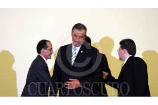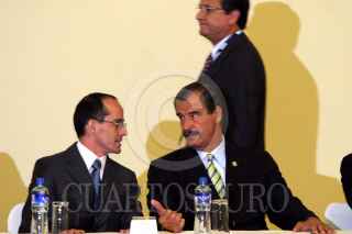 MEXICO, D.F. 13JULIO2005.- Al centro el presidente Vicente Fox Quesada luego de clausurar el Congreso Internacional de la Industria Automotriz, evento realizado en el Centro Banamex. FOTO: Sandra Perdomo/CUARTOSCURO.COM