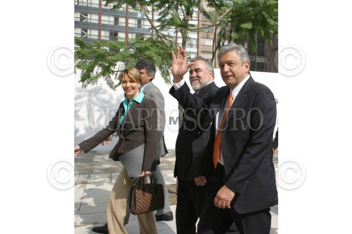 MEXICO, D.F. 28JULIO2005.- Andrés Manuel López Obrador, jefe de gobierno de la ciudad de México y Juan Ramón de la Fuente durante la ceremonia de entrega de la nueva sede de la secretaria de Relaciones Exteriores, que se ubica en la Plaza Juárez. FOTO: Nelly Salas/CUARTOSCURO.COM